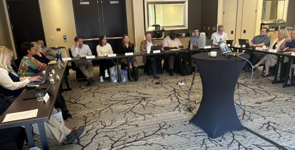 The Western States Housing Finance Agencies met in Albuquerque New Mexico in 2024.  Attendees included from left to right.  Rene (New Mexico), Corina (Washington), Dirk (Arizona), Lisa (Washington), Greg (Idaho), Donna (California), Scott (Oregon), Sheryl (California), Deon (Utah), Michelle (Alaska), Ellen (California), Jessica (Montana), Angela (Wyoming), Anita (New Mexico), Matt (Oregon), Keeble (Oregon), Jeff (New Mexico). Not Pictured  – Joseph (New Mexico) Photo at the Clayton manufactured homes plant tour.